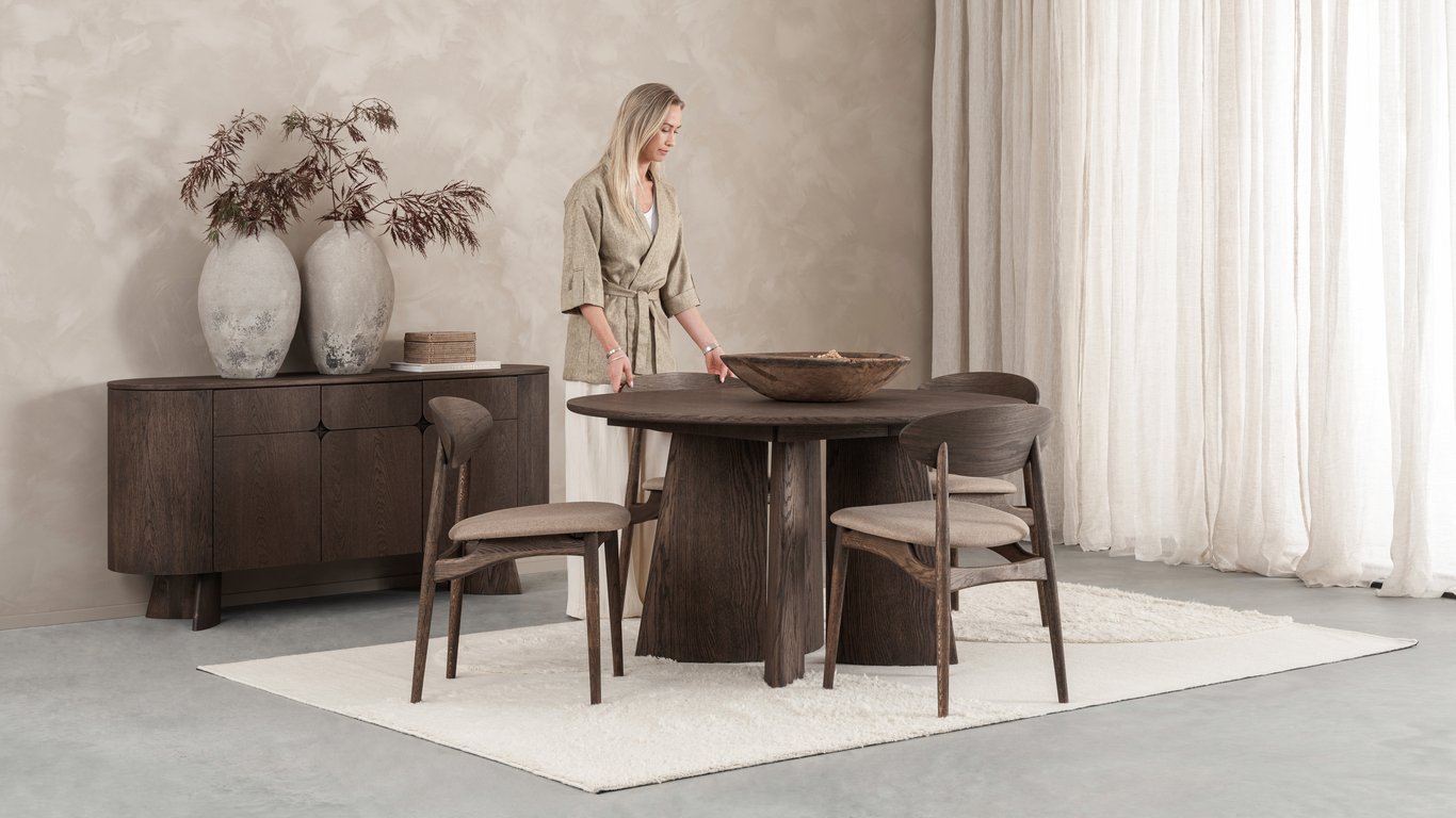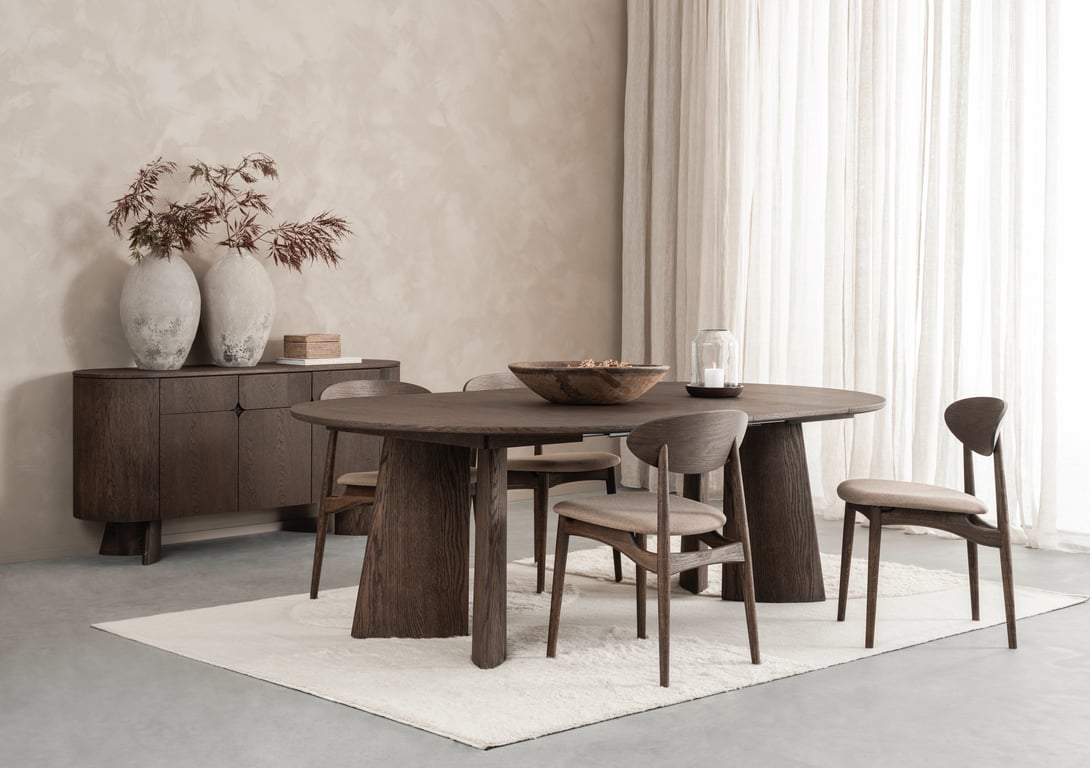 | Egenskaper | Uttrekkbart spisebord, ferdig montert (ben må monteres på ), del av en større serie, oljet finert eik, flere fargevalg, funksjonelt. |
