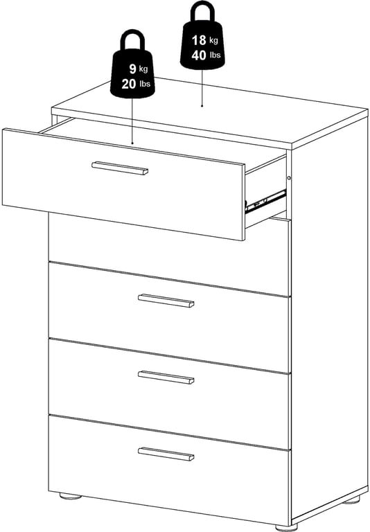 | Egenskaper | 5 skuffer m/metalluttrekk |
