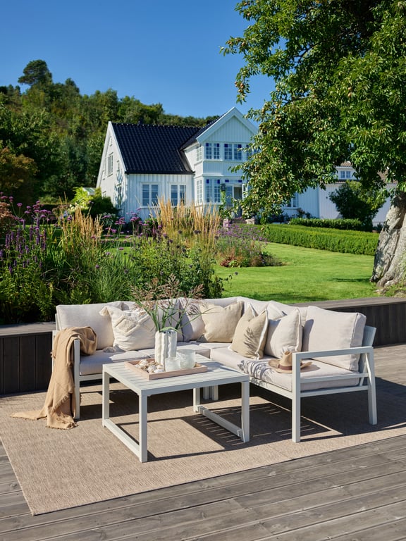 | Care | Rengjøres med mildt såpevann. Overflateskader utbedres med Akryl Lakkstift. Puter renses med Total Clean og impregneres med Eden Waterproofing. Oppbevares tørt og frostfritt utenom sesong. |
