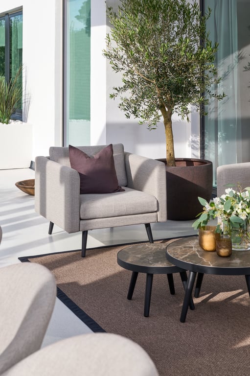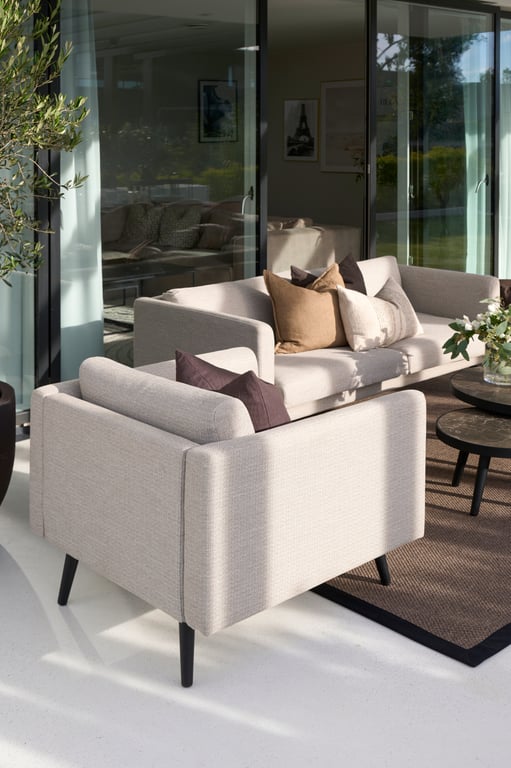 | Detaljer | Svart pulverlakkerte ben, aluminium ramme, Sunproof stoff, drenerende skum. Max vektbelastning 120kg. |