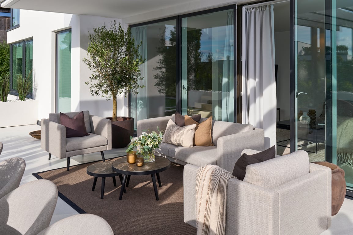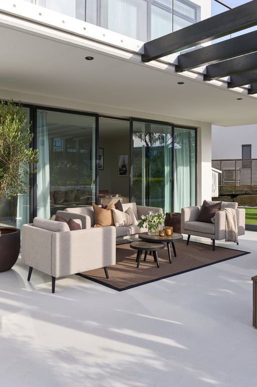 | Egenskaper | All-weather puter, Sunproof stoff med høy lysekthet 7-8, drenerende skum. |
