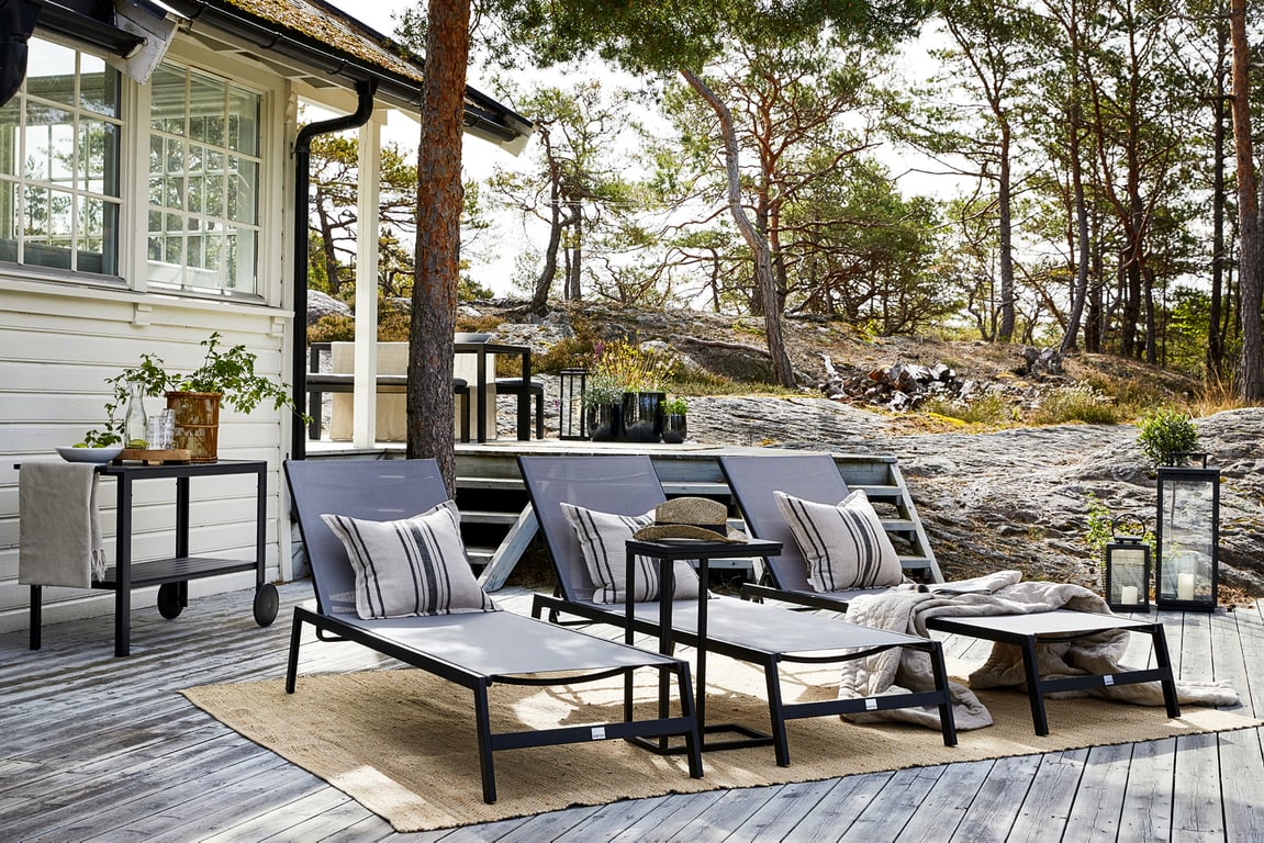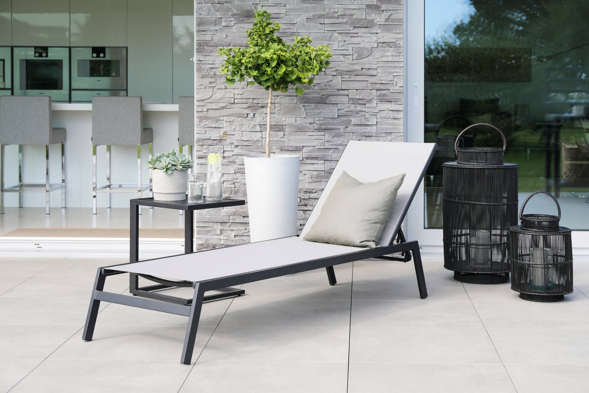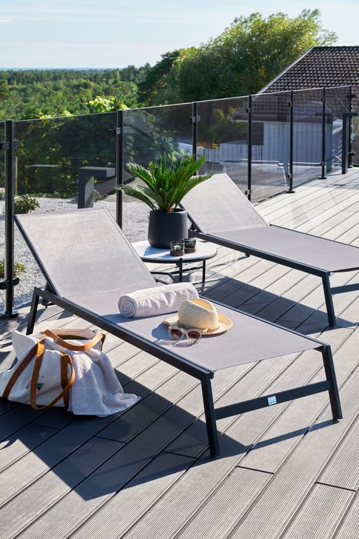 | Egenskaper | Regulerbar rygg. Veier lite. Kan legges helt flat. Stabelbar. Aluminiumsramme. Textilene. Vedlikeholdsvennlig. |