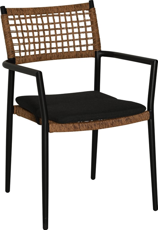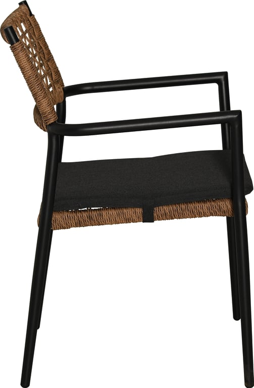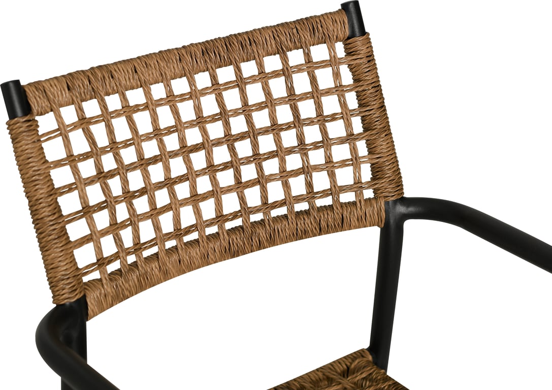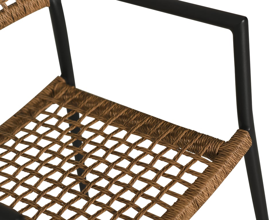 | Detaljer | Svart pulverlakkert aluminium understell, naturfarget vridd PE flett, svart Olefin pute. Max vektbelastning 120kg. |