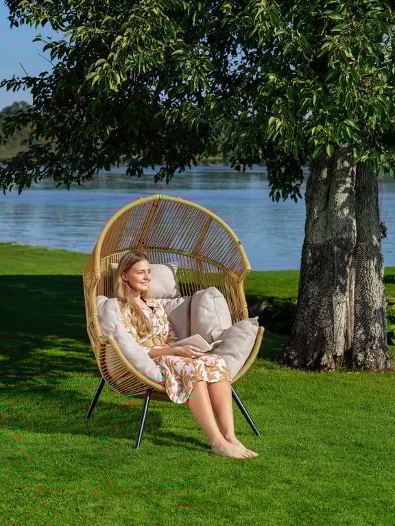 | Care | Ramme rengjøres med mildt såpevann. Overflateskader utbedres med Akryl Lakkstift. Puter renses med Total Clean, og impregneres med Eden Waterproofing. Oppbevares tørt og frostfritt. |
