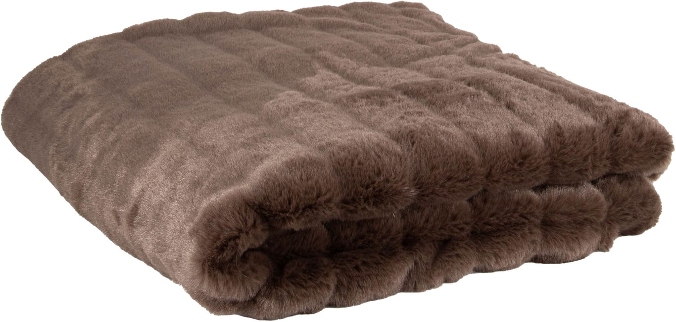 | Detaljer | Pledd i fuskepels mørk brun |
