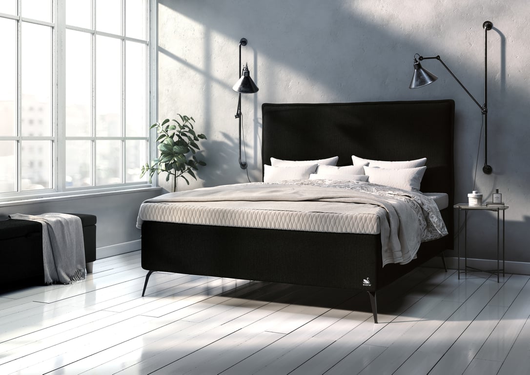Svane® IntelliGel Deluxe Zala kontinentalseng 200x210Integrert overmadrass, stoff Dream Graphite, ben Diamond svart metall H: 19 cm
