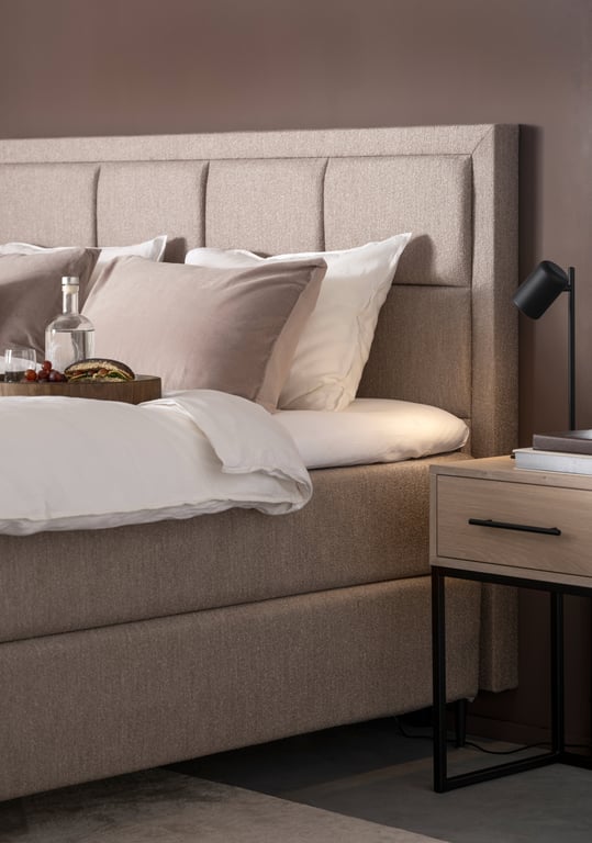 Odel® Tind kontinentalseng 180x200Tekstil Rondane strå, medium/fast liggekomfort, med Odel® 65 latex overmadrass