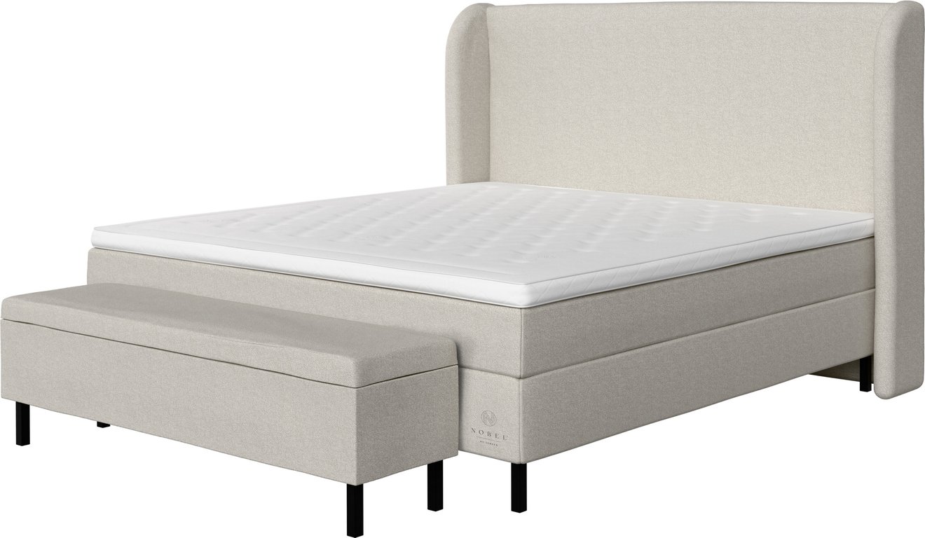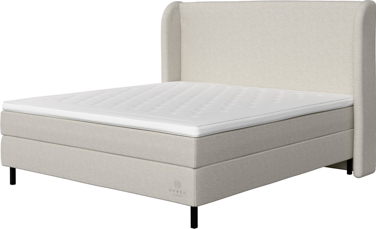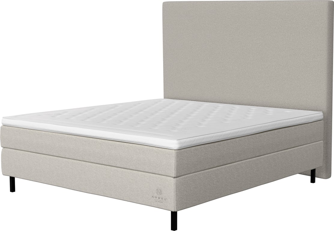 Nobel by Jensen kontinental 210x210Tekstil Linen 142, fast/x-fast liggekomfort, inkludert overmadrass og svarte treben