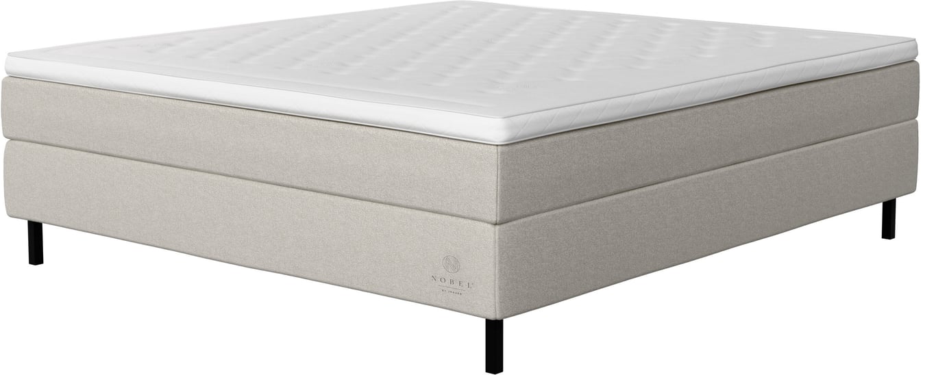Nobel by Jensen kontinentalseng 180x210Tekstil Linen 142, medium/fast liggekomfort, inkludert overmadrass og svarte metallben