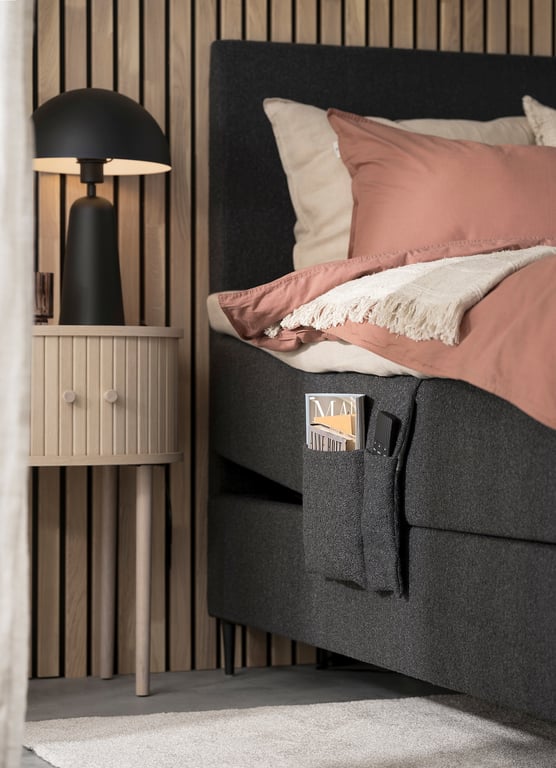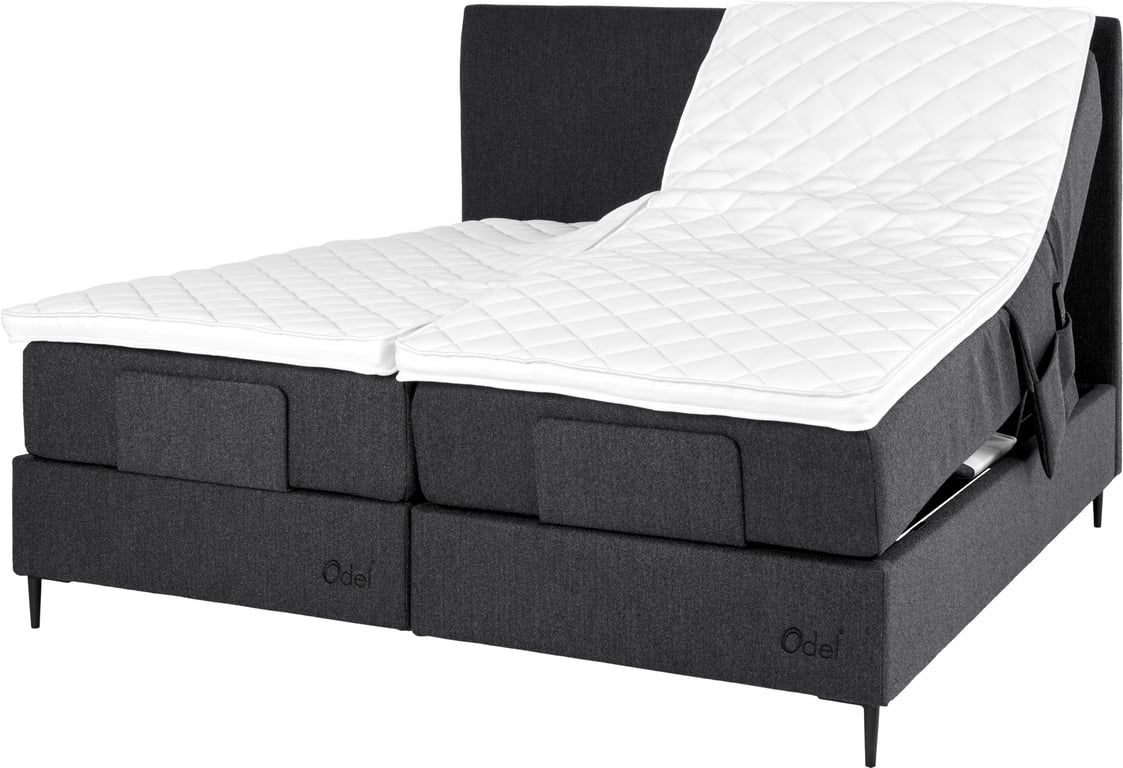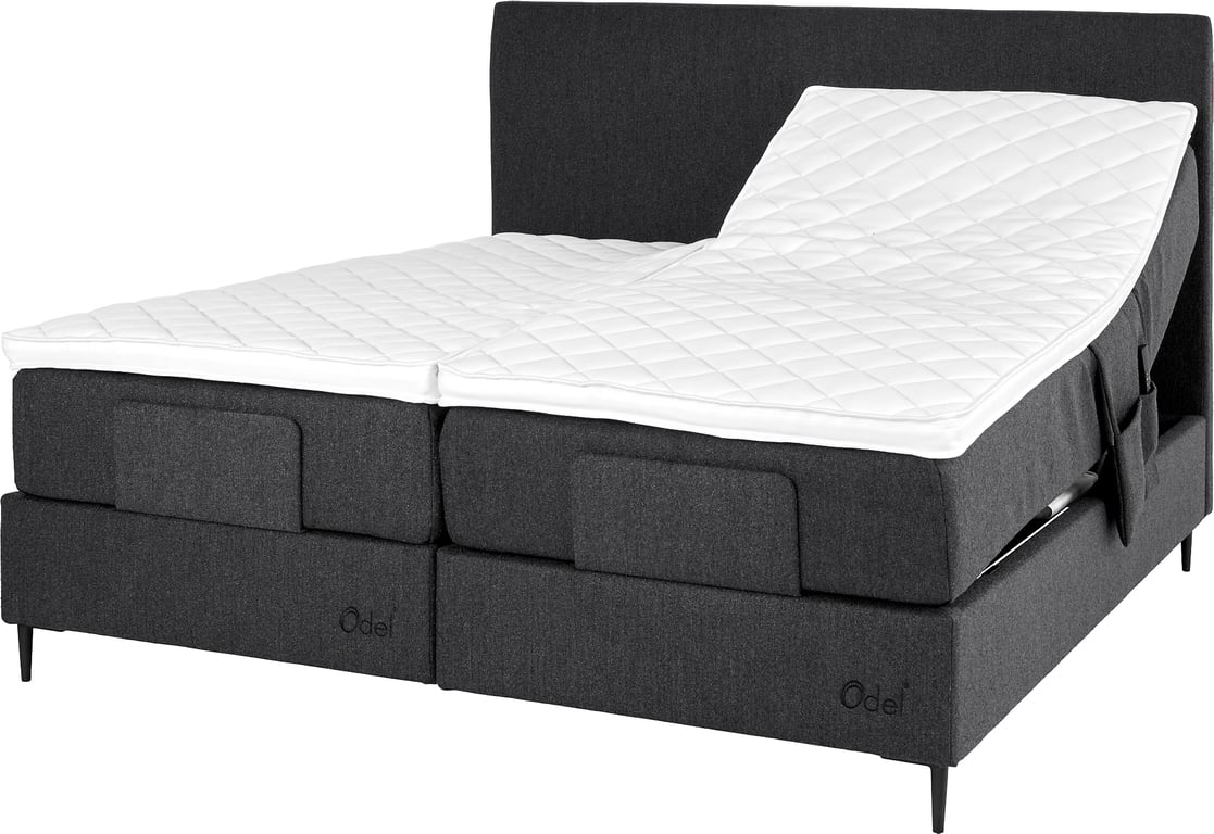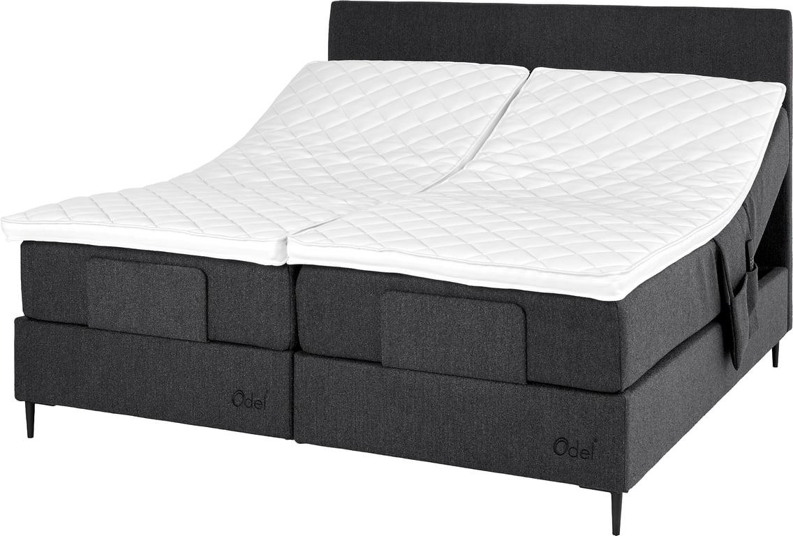 | Detaljer | Odel® regulerbar seng har det unike Chesspocket fjærsystemet hvor hver fjær jobber individuelt, og gir flere og bedre hvilepunkter. Chesspocket er bygd opp med annenhver høyde på fjærene. Dette gir stor arbeidsdybde, hvor de høye fjærene gir unik overflatemykhet, mens de lave fjærene bidrar til aktiv støtte. |