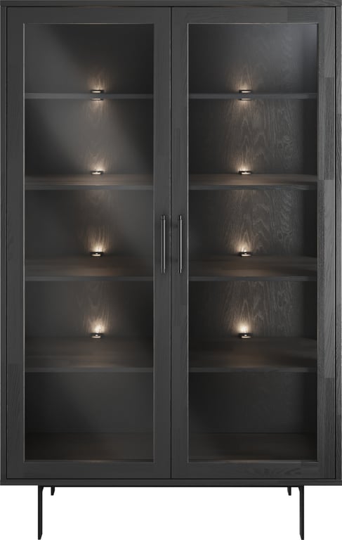 | Detaljer | Vitrine i massiv ask med mulighet for lys |