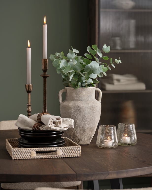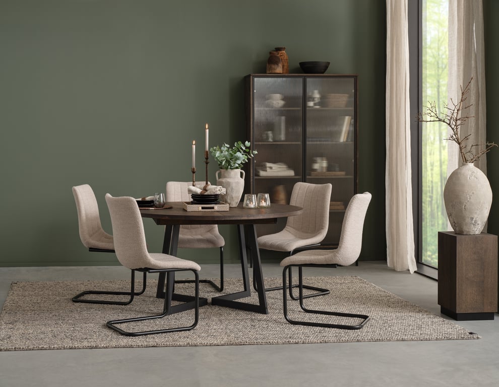 | Egenskaper | <ul><li><p>Oljet heltre eik.</p></li><li><p>30 mm bordplate gir et slankt uttrykk.</p></li><li><p>Solid uttrekk med stålskinner.</p></li><li><p>Kan utvides med 2 ileggsplater à 50 cm.</p></li><li><p>Leveres i to størrelser og flere farger.</p></li></ul> |