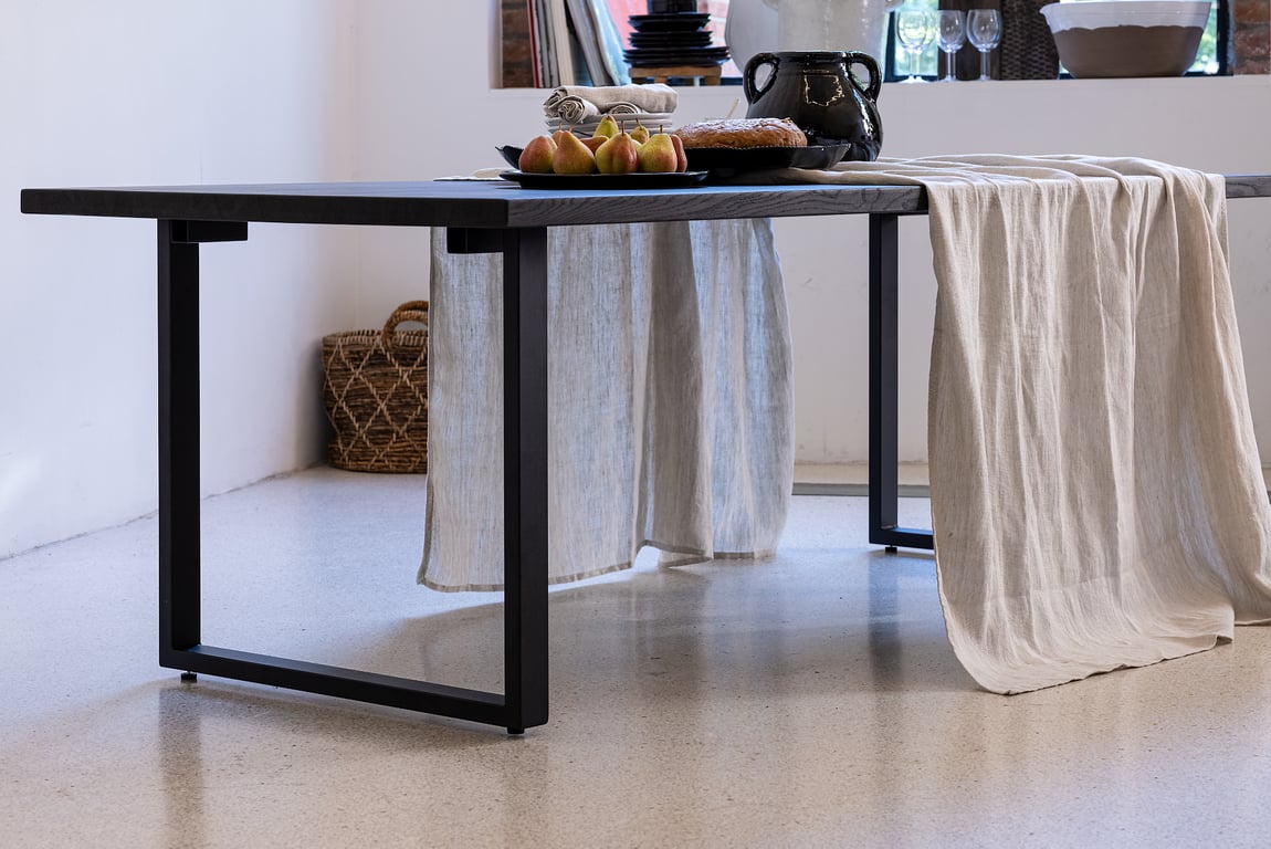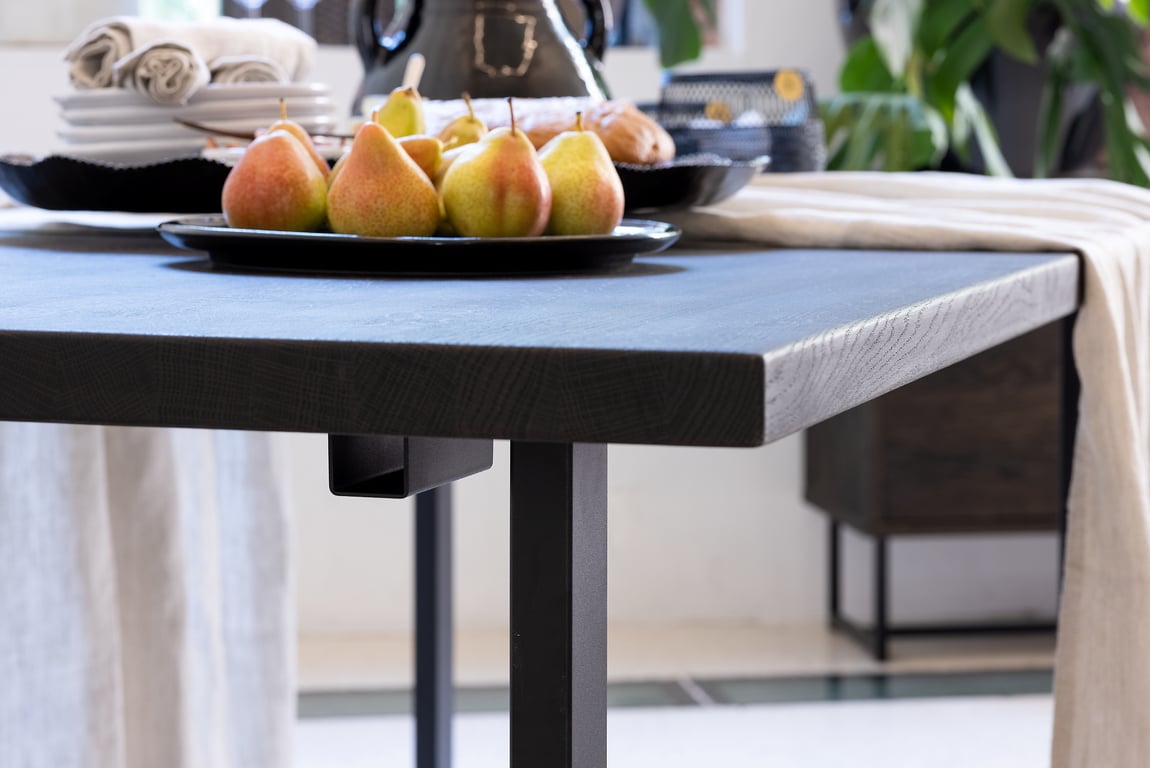 Embla spisebord rundt Ø 140 cmsmoked heltre eik med metallunderstell
