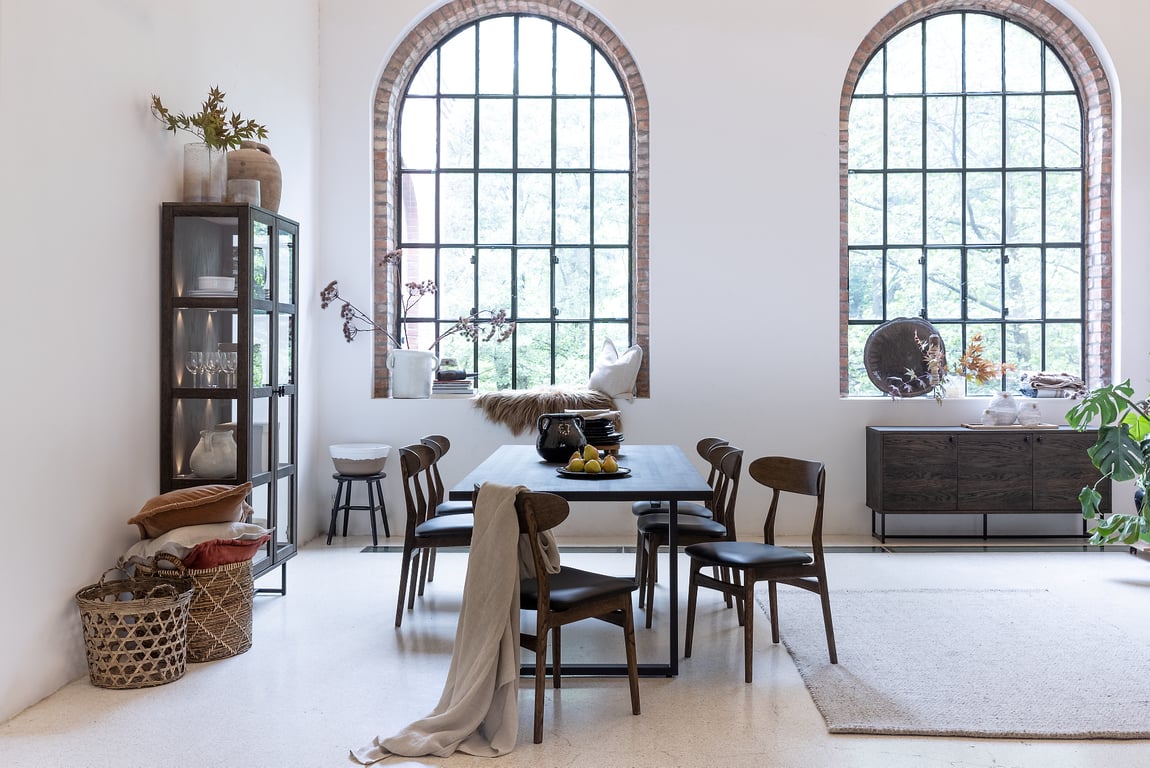 Embla spisebord rundt Ø 120 cmsmoked heltre eik med metallunderstell