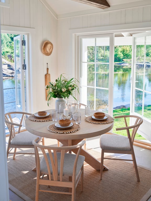 Aron spisestolHvitoljet heltre eik, sete i beige boucle