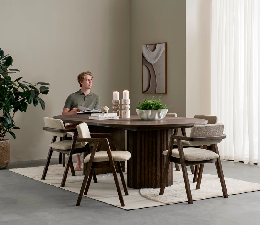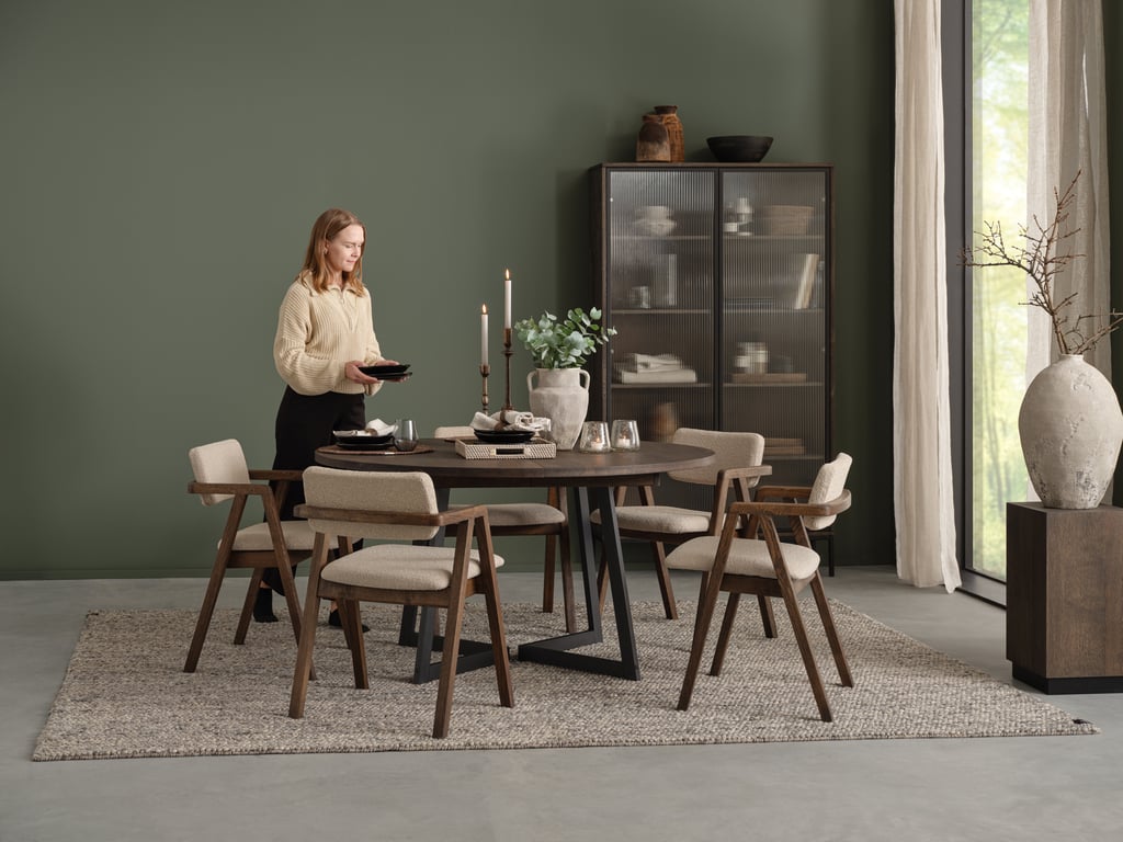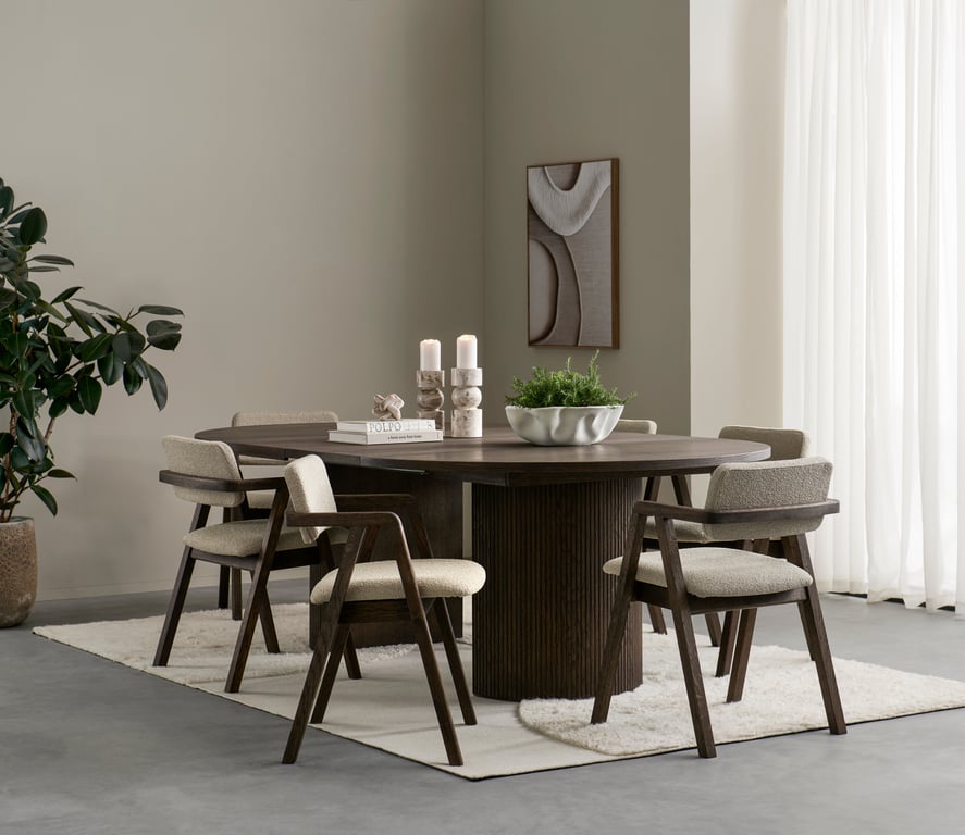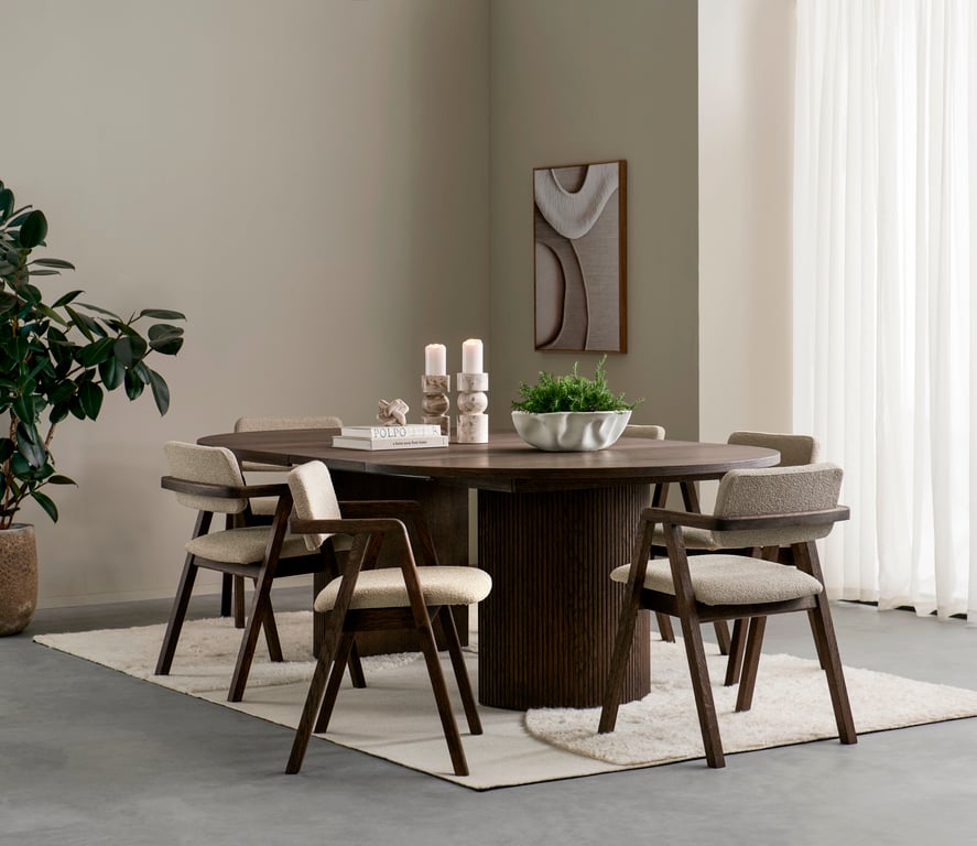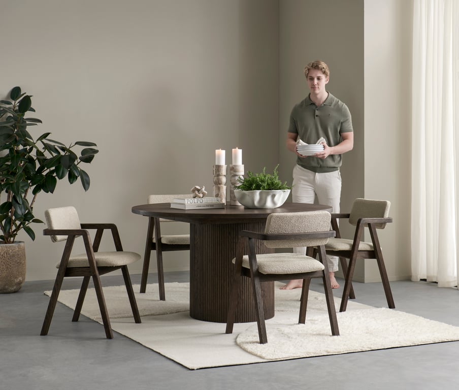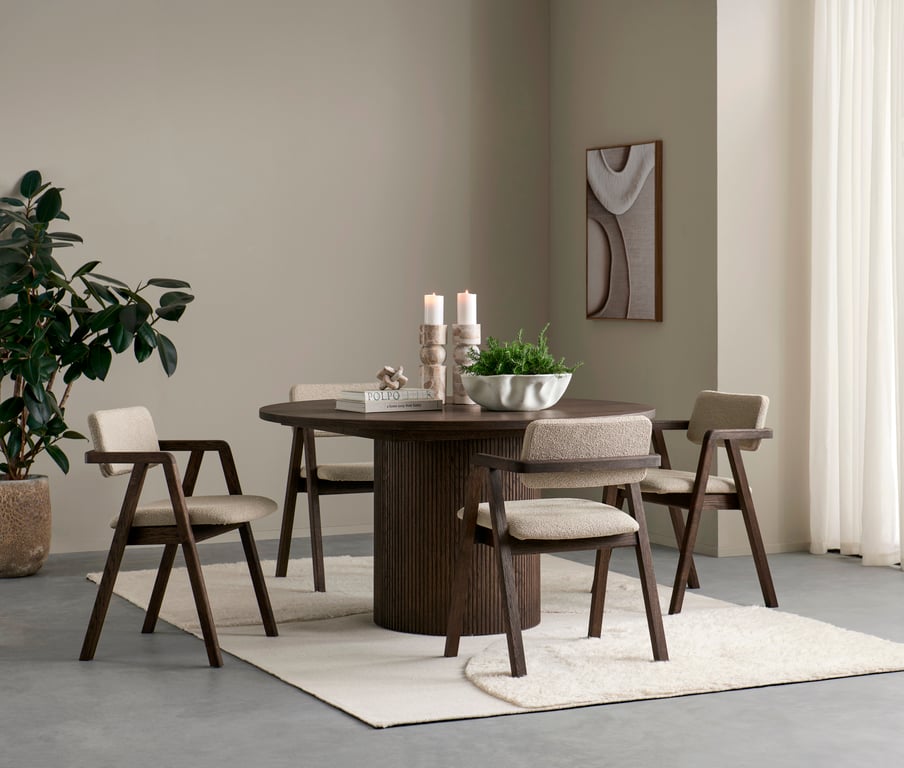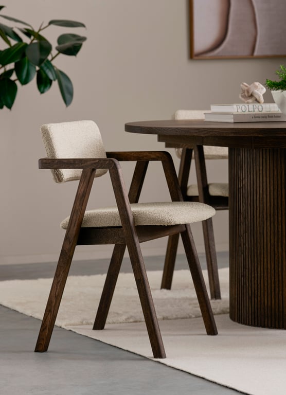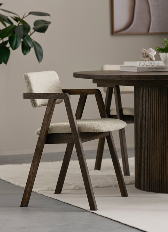 | Material | Heltre eik, stoff Domino beige |