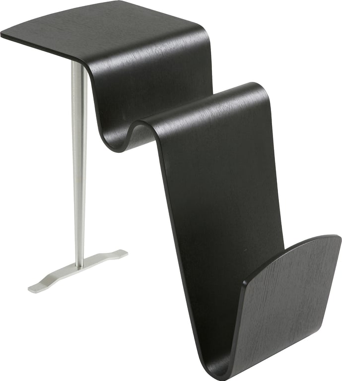 | Detaljer | Funco bord i formpresset svartbeiset eik, med børstet metall ben |