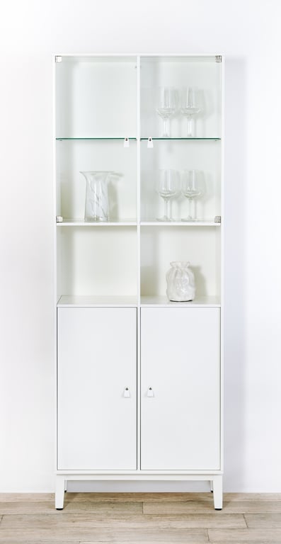 Square skjenk212 x 42, H 79 cm. Modulsystem oppsett 99, lang skjenk i hvitoljet eik heltre med fingerskjøttet hjørner