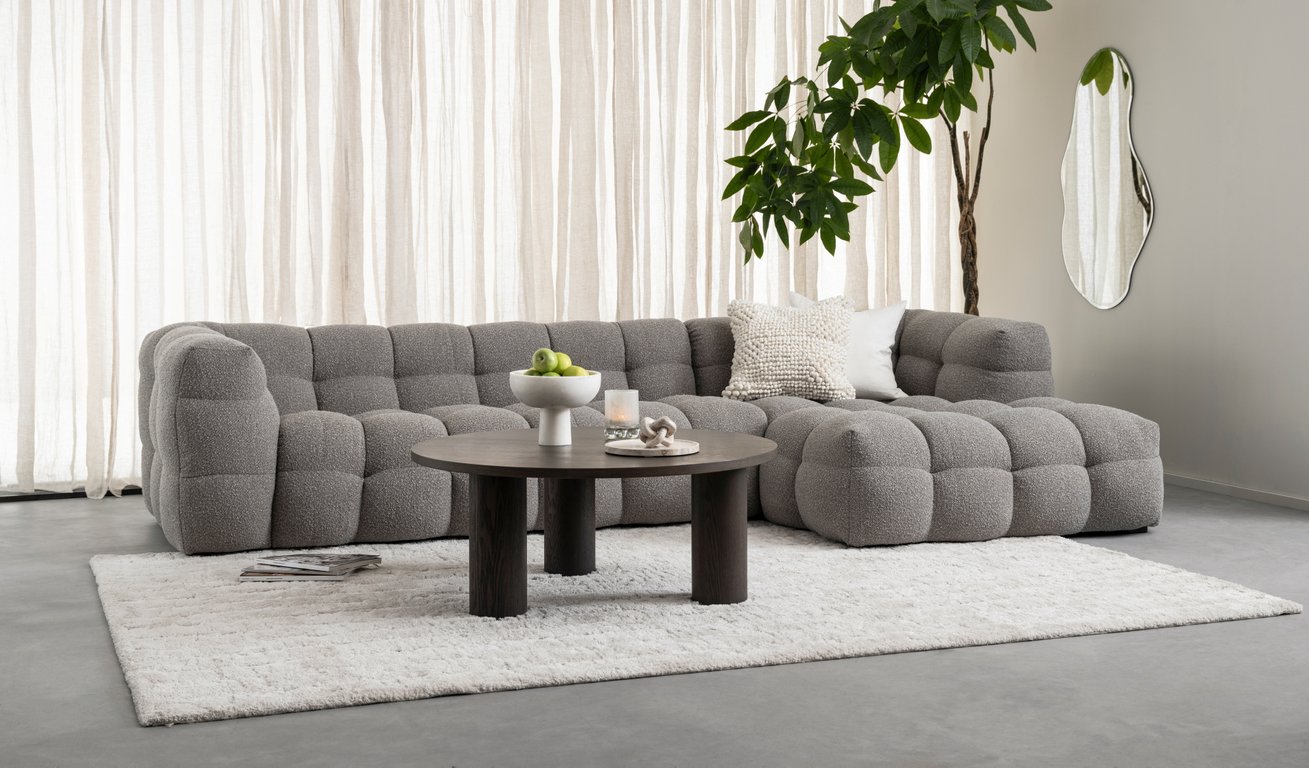 Michelin 3 seter med sjeselong høyreStoff Ascot Light grey