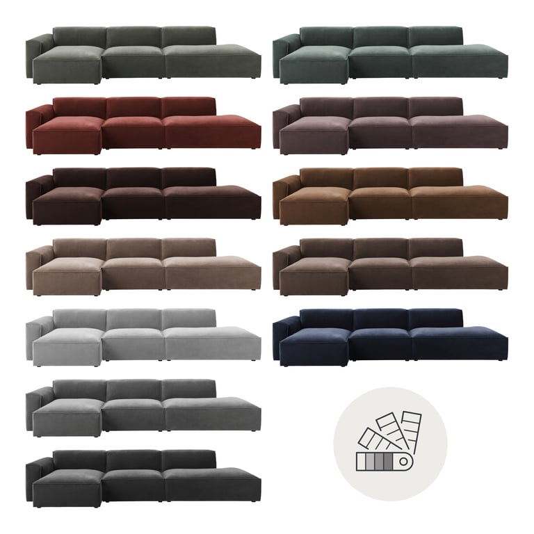 | Detaljer | Moderne og minimalistisk design, byggbar sofa, tilgjengelig i alle stoffer og farger, dunkomfort i sete, rygg og vanger |